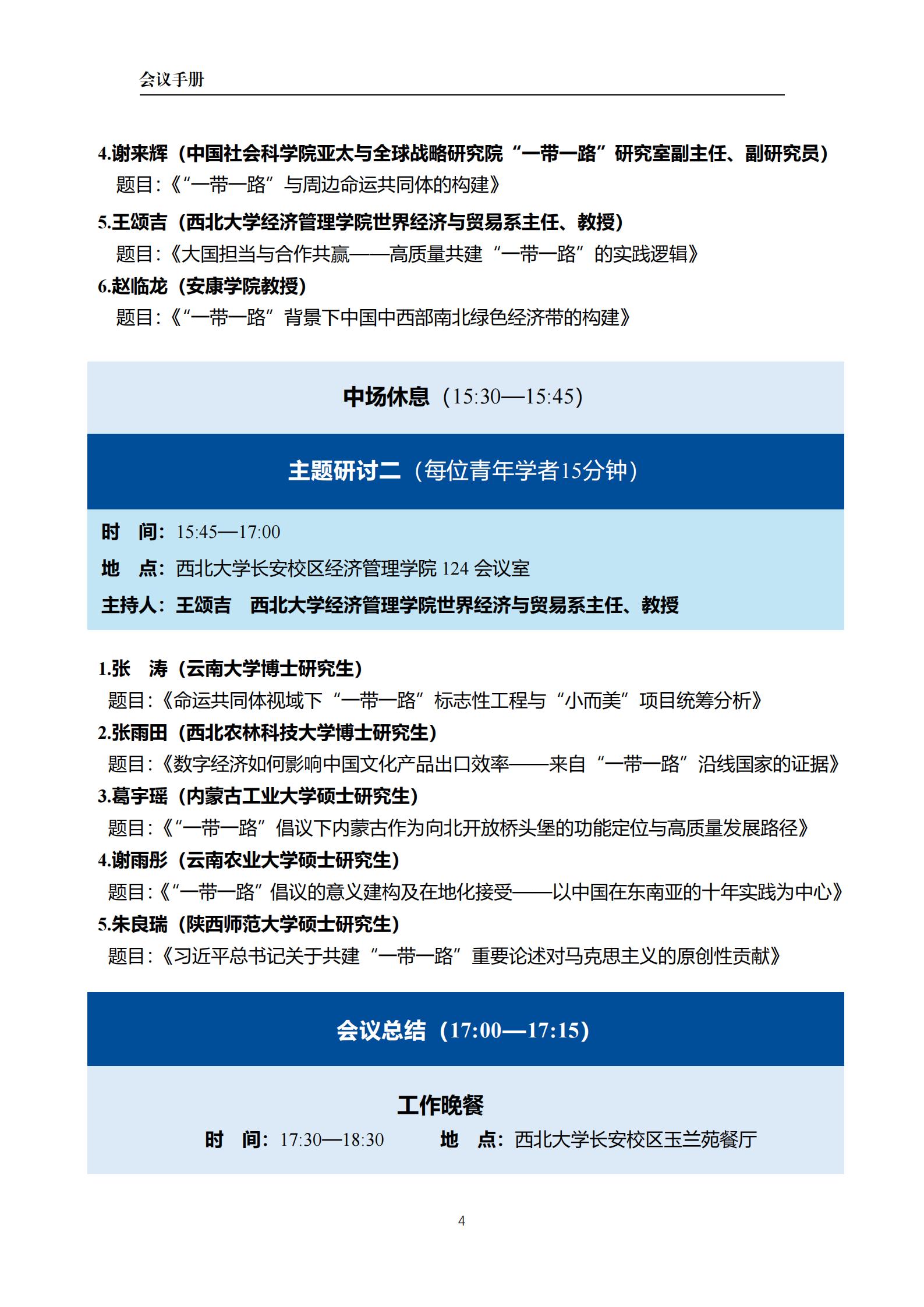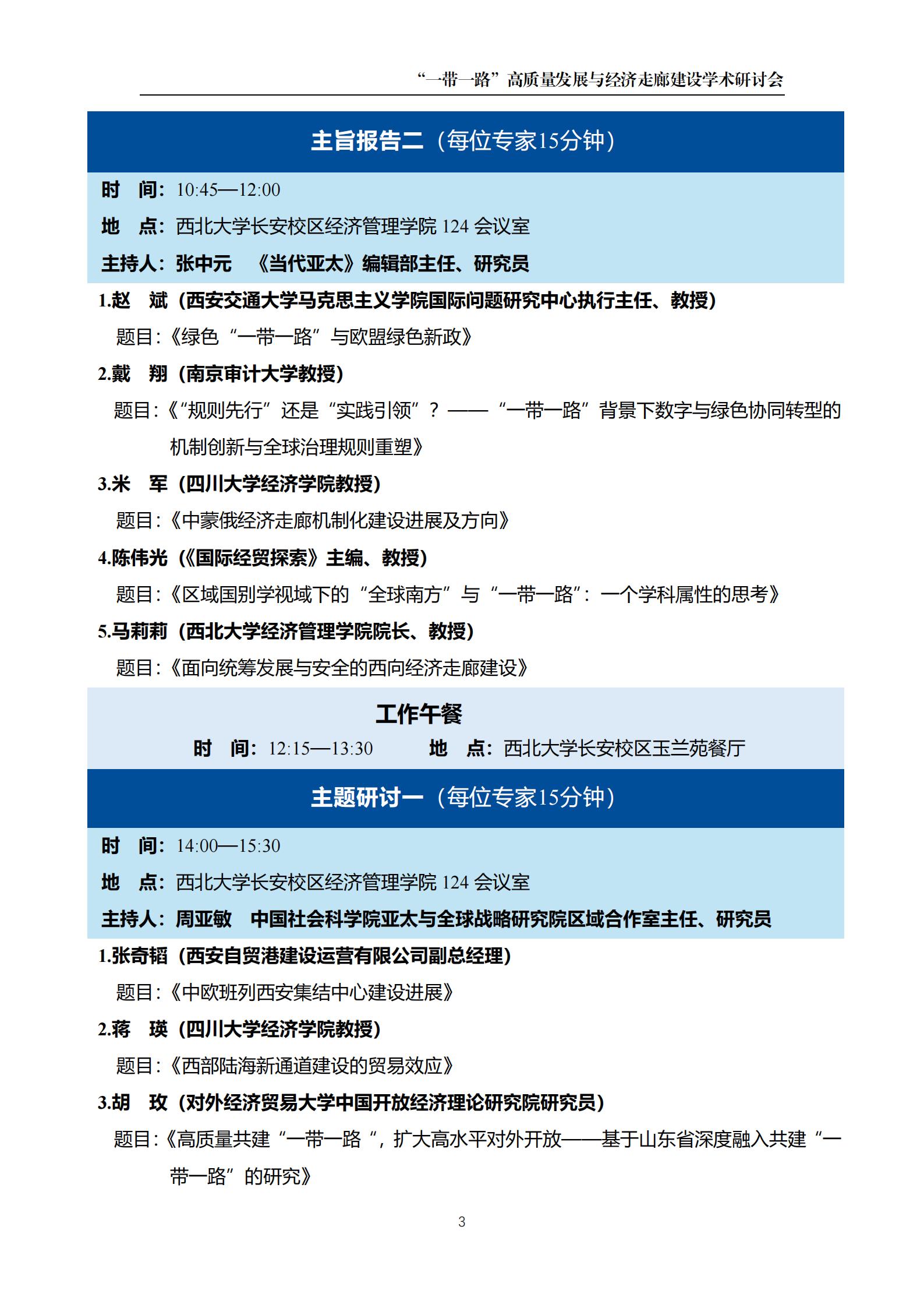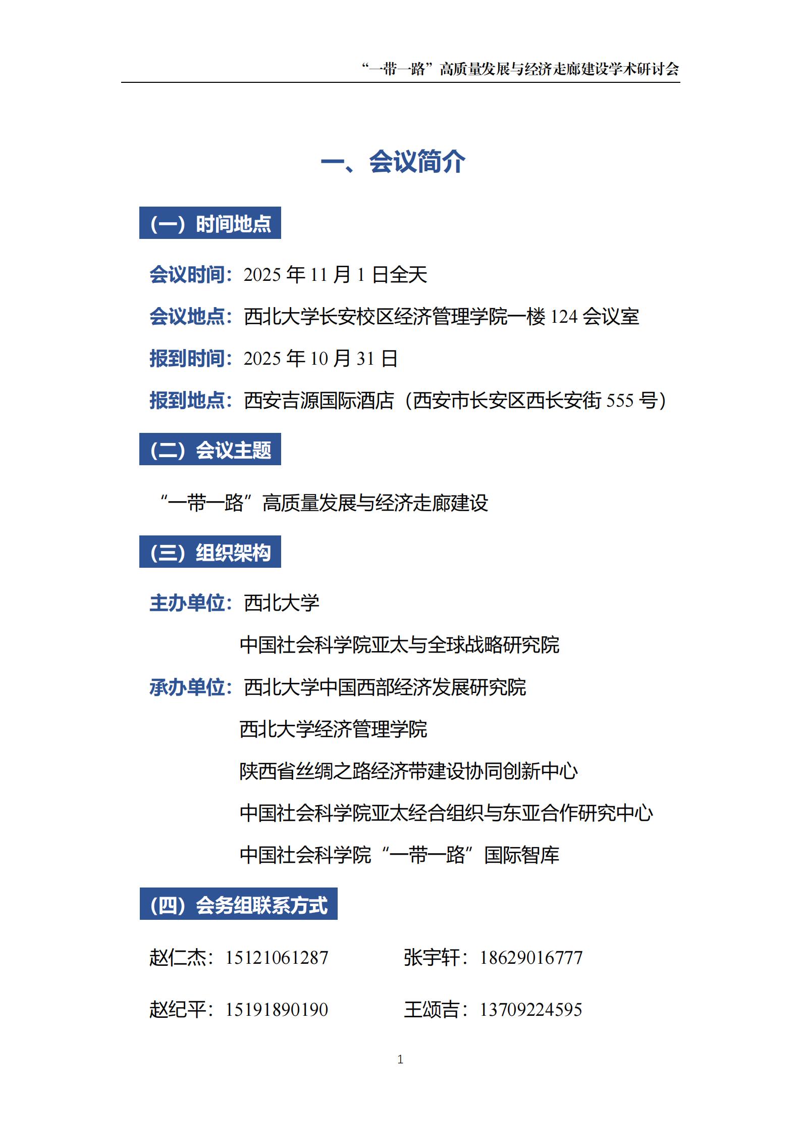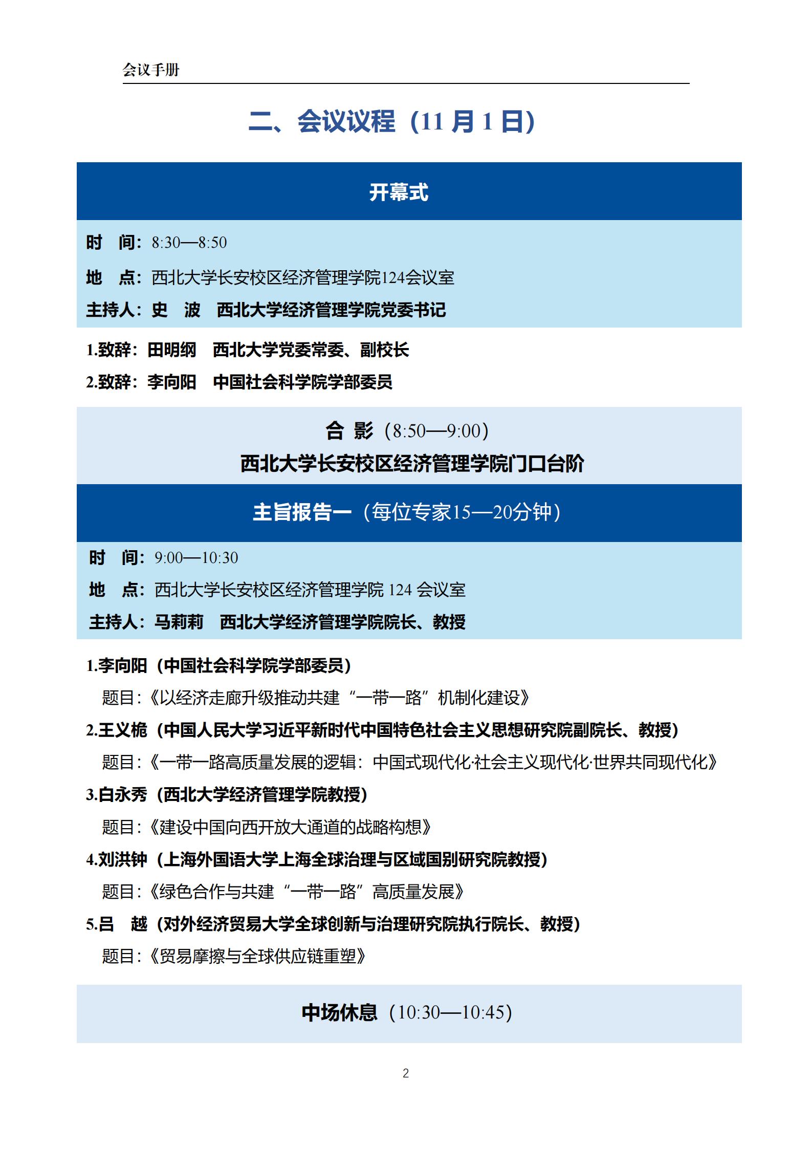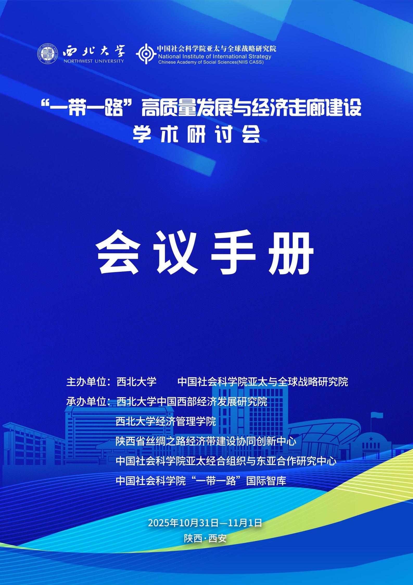 会议手册|“一带一路”高质量发展与经济走廊建设学术研讨会日程安排 2025-10-31 附件【会议手册10.31_扫描版.pdf】已下载次 上一条:中国西部经济发展研究院关于拟选聘教师情况的公示 下一条:“中华文脉传承创新”经济史学学术研讨会暨 “人文经济史学研究中心”成立仪式 / 打印 / / 关闭 /