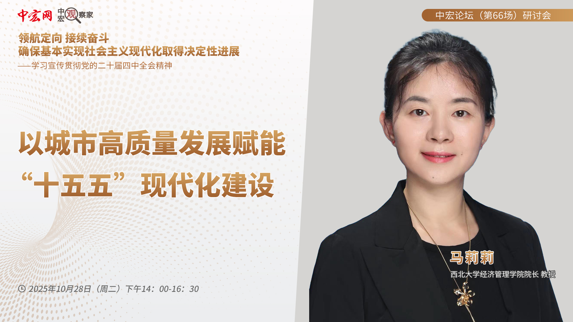 院长马莉莉教授应邀出席中宏论坛(第66场)研讨会并做主题发言 2025-11-10 聚焦“领航定向 接续奋斗 确保基本实现社会主义现代化取得决定性进展——学习宣传贯彻党的二十届四中全会精神”主题,中宏论坛第六十六场在线研讨会于10月28日下午圆满召开。院长马莉莉教授应邀出席论坛并作了主题发言。 以下是马莉莉教授发言: 按照党的二十大作出的战略安排,我国将到2035年基本实现社会主义现代化。“十五五”时期是“基本实现社会主义现代化夯实基础、全面发力的关键时期”。数智科技革命驱动的中国式现代化,亟待城市高质量发展提供崭新动能。 一、“十五五”时期推进中国式现代化建设具有复杂性 21世纪以来,中国在驱动流程分解、网络联结的新型生产方式过程中,通过承接加工制造到吸聚越来越大规模的生产环节,引领东亚跻身全球生产制造集聚区域,中国的制造业规模约占全球1/3;同时在驱动数智科技产业革命、创新经济治理方式等方面取得初步进展,这为到2035年基本实现社会主义现代化奠定坚实基础,也为“十五五”时期向现代化全面发力与奋进廓清方向。 与此同时,在中国综合国力不断攀升过程中,百年未有之大变局加速演进,世界地缘政治经济格局深刻变迁,中国所面对的不确定难预料因素增多,这给“十五五”时期持续推进中国式现代化建设带来风险挑战。 第一,科技创新的难度。中国从承接加工制造到工业化积累,已建成全产业链覆盖的世界上最完整、规模最大的工业体系。在数智科技产业革命兴起之际,不管是传统产业的更新改造,还是新能源、新材料、航空航天等战略性新兴产业,以及量子科技、生物制造、氢能和核聚变能、脑机接口等未来产业,都到了攻坚克难的啃硬骨头阶段,唯有颠覆式突破与创新,才能找到现代化的可行路径。 第二,资源保障的挑战。一是庞大的生产制造体系,依赖于稳定可靠的多元化资源供应,包括原材料等初级产品、零部件等配套产品。二是随着产业升级,特别是新兴科技的研发,对人的心智开发要求不断攀升,这就有赖于教育、医疗、卫生、安全等大规模公共服务的投入,以培育足够多专业人才投入于创新实践。三是现代化的产业体系越趋依赖于研发、设计等中间服务延伸,交通、园区等硬件设施供给,以及政策、法律等软件设施配套。这些均构成现代化的重要组成部分。 第三,市场需求的约束。世界范围的两极分化、生产与消费分布的失衡、分配制度不健全等因素,仍然使有效需求约束成为产业可持续发展不容觑视的现实挑战。特别在数智科技产业革命浪潮下,人工智能在重复性劳动、简单劳动等领域对劳动力的替代,影响到劳动者通过劳动获得收入的途径,从而给有效需求攀升带来压力。 第四,地缘形势的风险。作为世界上第一大生产制造国,在资源和市场均难以完全自给自足,对国际市场具有一定依赖性的国家而言,大国博弈可能通过资源输入端、市场连接端、虚实流通端等各环节输入风险冲击。2008年以来中国所展开的积极应对也表明了世界局势的复杂性。如何保障现代化的前进方向,成为成败与否的关键。 二、城市空间成为推进中国式现代化建设的重要载体 “十五五”时期是“十四五”规划的深化期,需巩固科技自立自强、产业链韧性提升等既有成果,同时也需解决发展不平衡、内需不足等深层次矛盾。“十五五”时期阶段性任务,决定城市这一空间载体,不仅仅是企业、产业、人口的汇聚地,而且势必发挥更为关键的历史性作用。 第一,企业竞争越趋依赖于城市空间所承载的产业链延伸及集群化发展。模块网络化新生产方式的兴起,决定生产链条以专精特新环节的网络联结作为组织方式,网络规模效应决定企业、产业、甚至产业链的竞争力。数智技术的融入,巨规模网络效应将更为强化。这就使企业竞争不同于二十世纪垄断企业一家独大足以形成竞争力的时代,龙头企业除了自身具有核心技术之外,还有赖于上下游生态合作企业形成产业链延伸、产业集群化,由此形成整合竞争力。这种产业组织生态与形态,需要由一定规模的城市空间来提供物理承载与有序依托。 第二,城市互联互通对接区域或全球分工网络是产业可持续集聚的基础与前提。分工越趋细化到生产流程内部,直接或间接关联的分工环节不断分散到更广阔的空间范围,使特定空间所聚集的产业无法独立存在;而需要紧密联结到区域或全球分工体系及生态,才有可能进行资源输入、产品输出、自身可持续集聚。而这种对外联通的能力,主要由城市的软硬件互联互通设施来供给与保障。 第三,企业与产业发展所需公共服务及营商环境配套主要依靠城市提供。随着创新产业发展所依赖的要素供给、资源保障、服务衍生等要求提升,成本控制越趋严格的企业、产业已难以保障自我供给,而需要由外部社会提供大规模的公共服务与配套。在一定范围的产业集聚区,城市成为多元化公共服务与营商环境运营的主要载体,城市的运营能力,直接影响到延伸至公共服务的全产业链的竞争力,继而决定市场化的主导产业的区域、国际乃至全球竞争力。 第四,科技创新依赖于城市空间蓄积人力资源池。由于科技创新依赖于专业人才,以及大规模科技创新更依赖于可观的人才资源池,这就给数智时代社会发展提出更高且崭新的要求。人的心